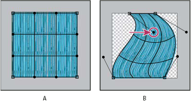 Cuando utilice los puntos de control para distorsionar un elemento, seleccionar Vista > Extras muestra u oculta la malla de deformación y los puntos de control.